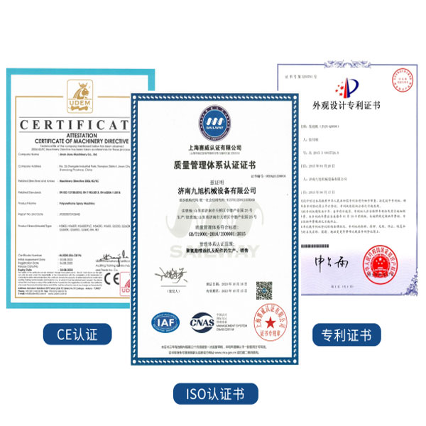 山東九旭機械科技有限公司歷經十幾年的發(fā)展,已成長為聚氨酯設備行業(yè)頗具實力的設備制造業(yè)之一。企業(yè)主要產品:聚氨酯高壓噴涂機、聚氨酯發(fā)泡機、聚氨酯噴涂機、聚脲設備、聚氨酯發(fā)泡設備、聚氨酯發(fā)泡機等關于設備配件(聚氨酯高壓噴槍、槍嘴、加熱管道、料塊、摩擦副、增壓泵、混合式、提料泵等)也是堅持最好的質量服務用戶,并承接:外墻保溫、冷庫保溫發(fā)泡等工程。山東九旭機械科技有限公司已通過ISO9001:2015質量管理體系認證和國家高新技術企業(yè)認證,目前山東九旭機械設備已領跑中國聚氨酯設備行業(yè),成為廣大客戶之首選。